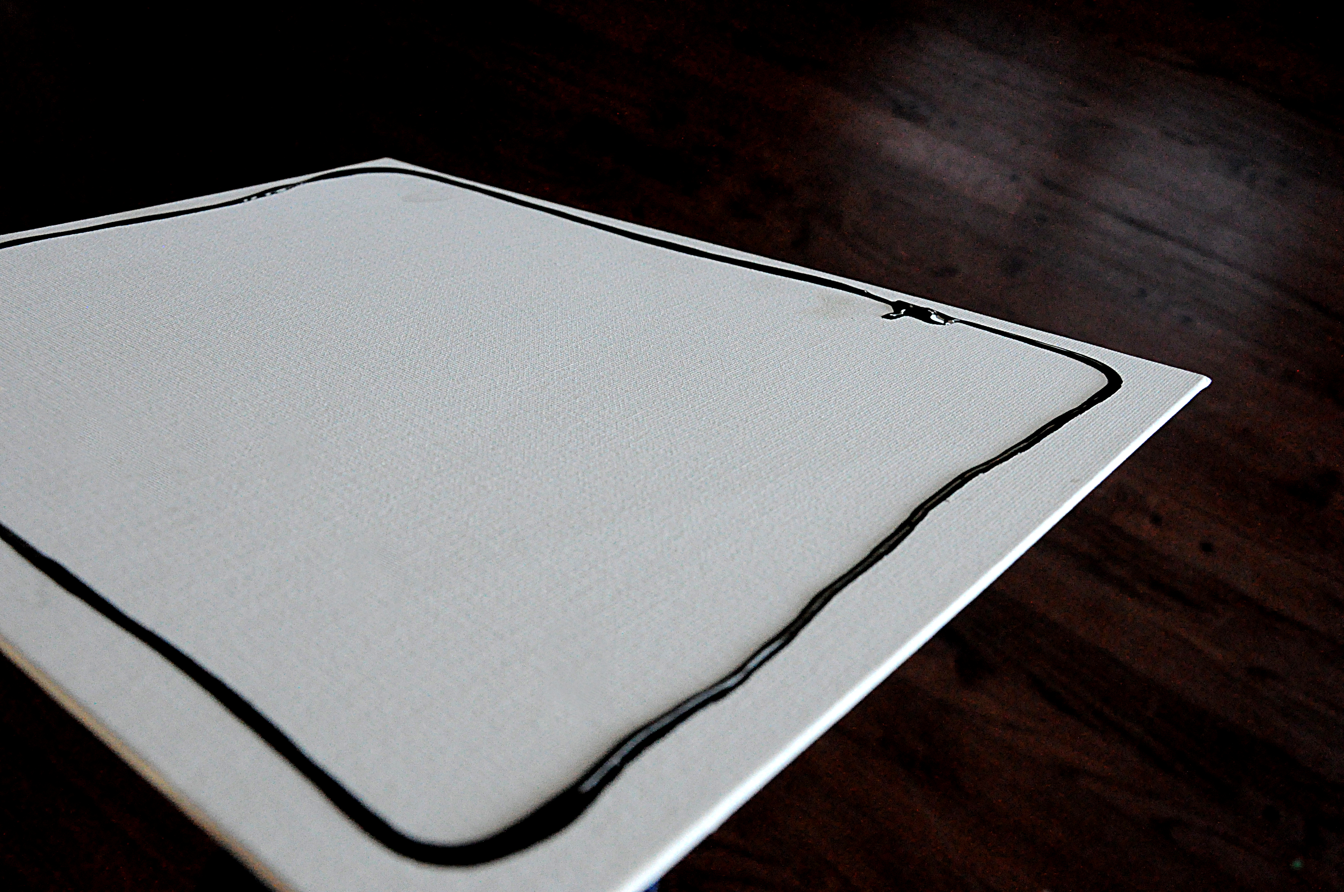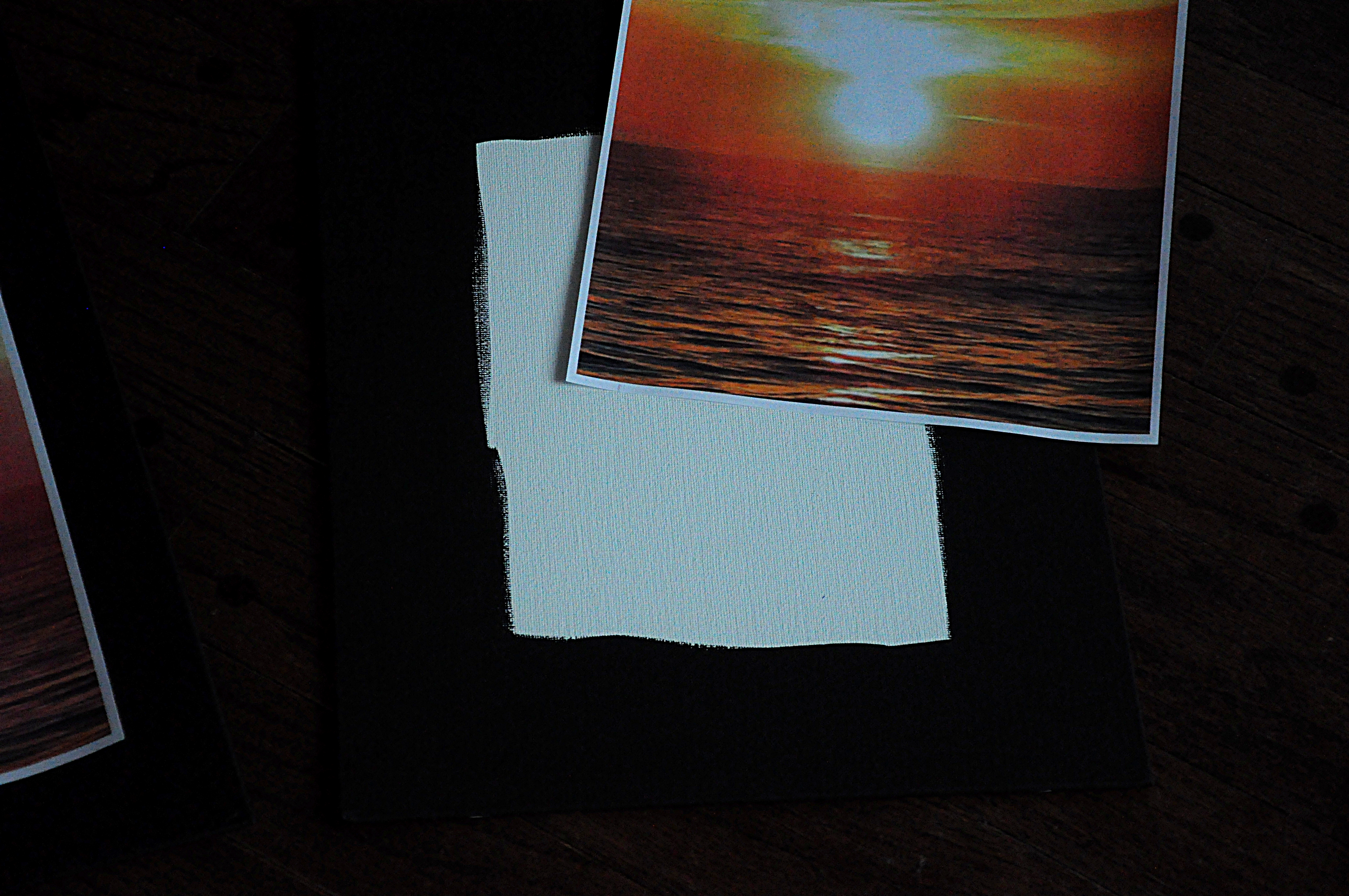 6) You can apply the mod podge directly to the canvas, but I laid the image face down on another piece of paper and mod podge the image itself to prevent the excess from running over onto the black ‘frame’.
